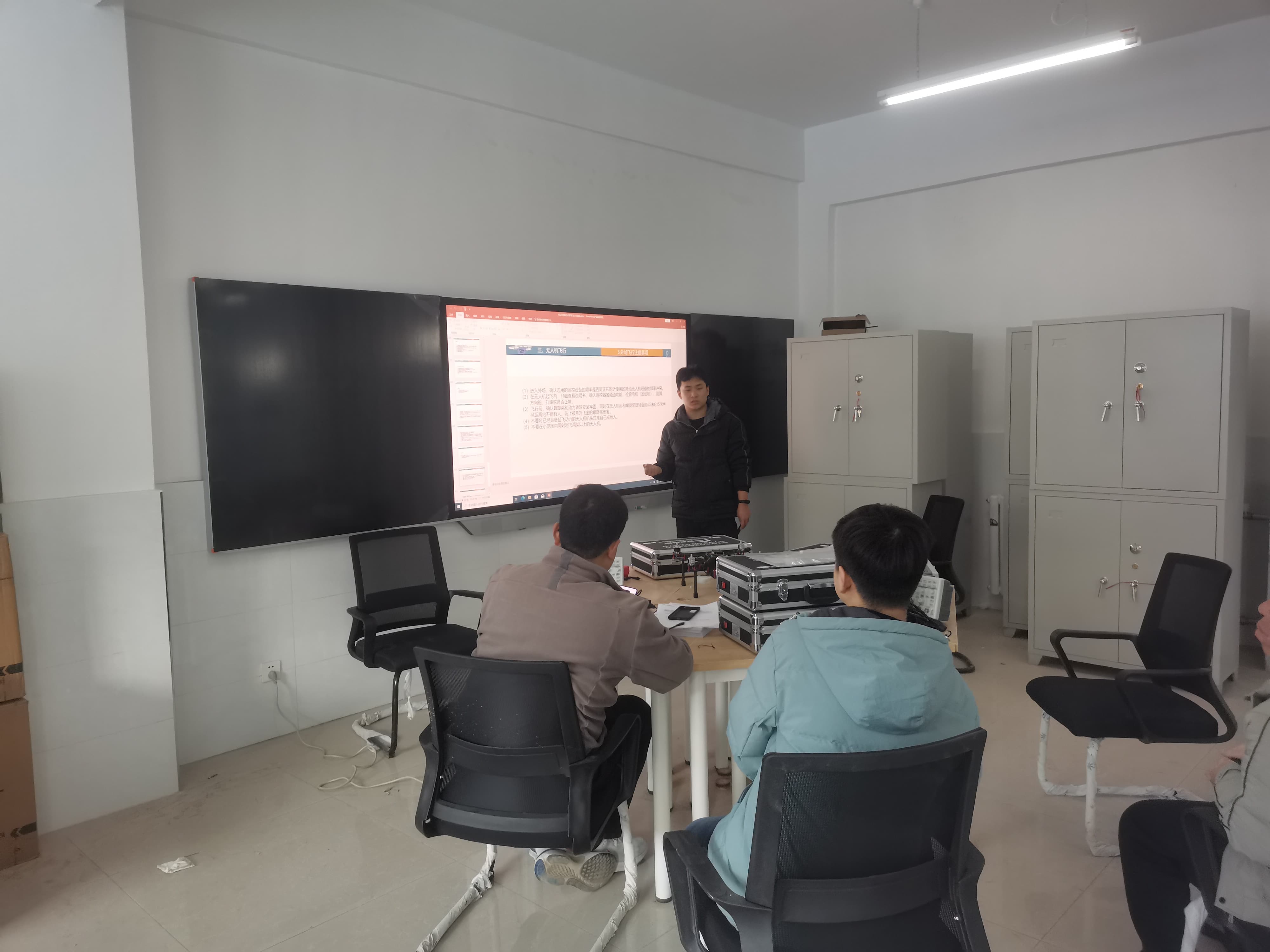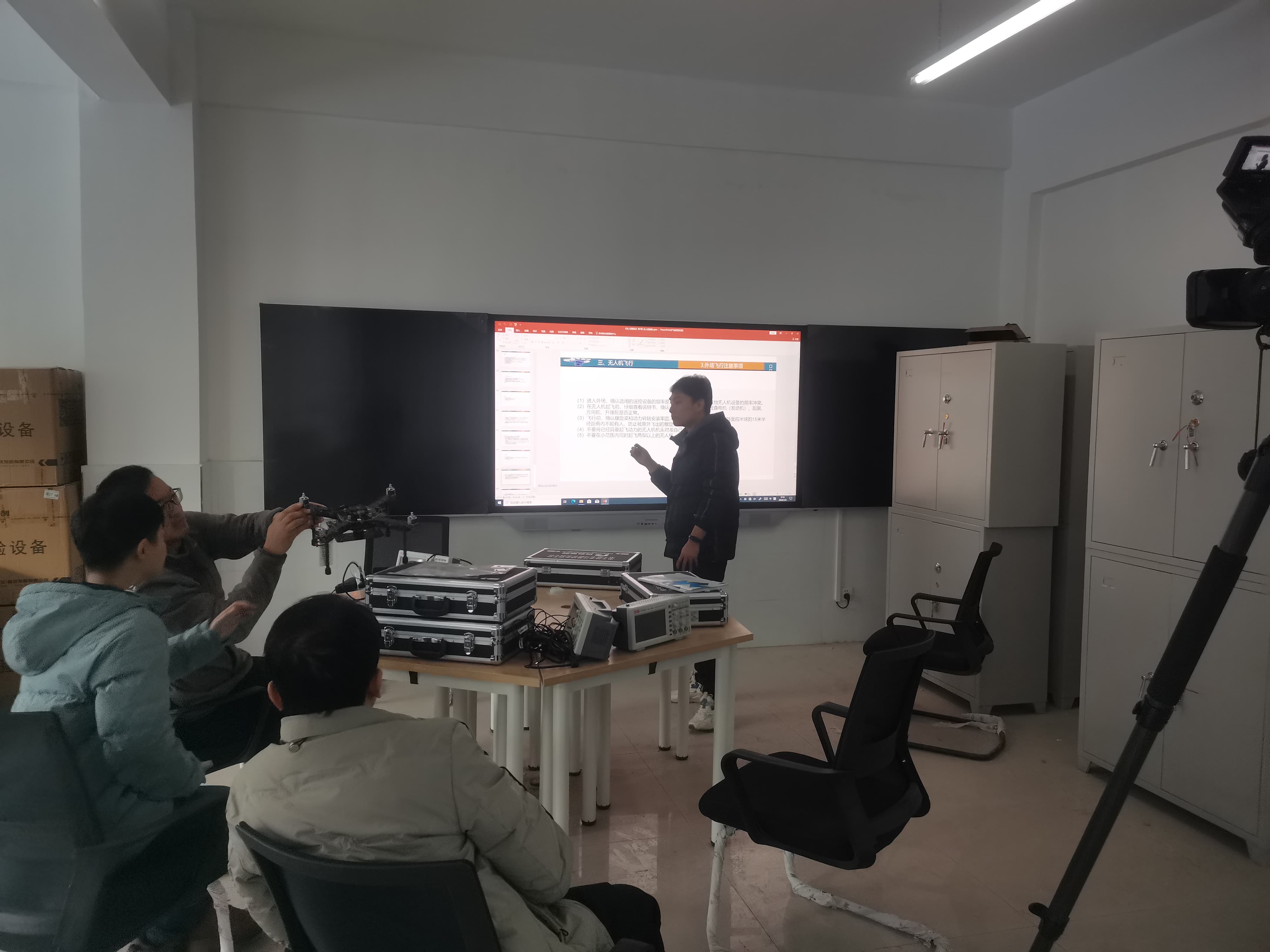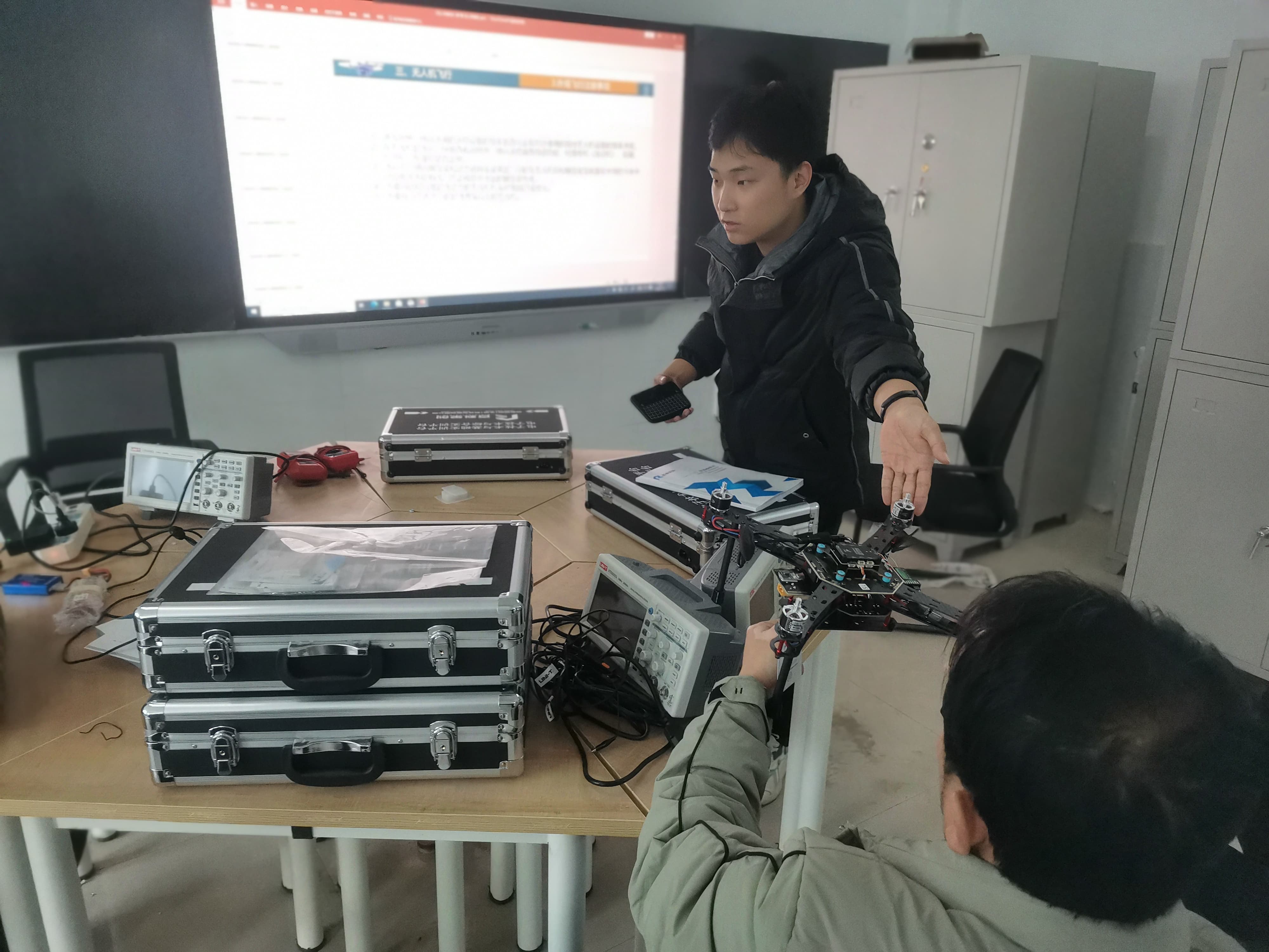 工程師在展示并講解無(wú)人機(jī)遙控器