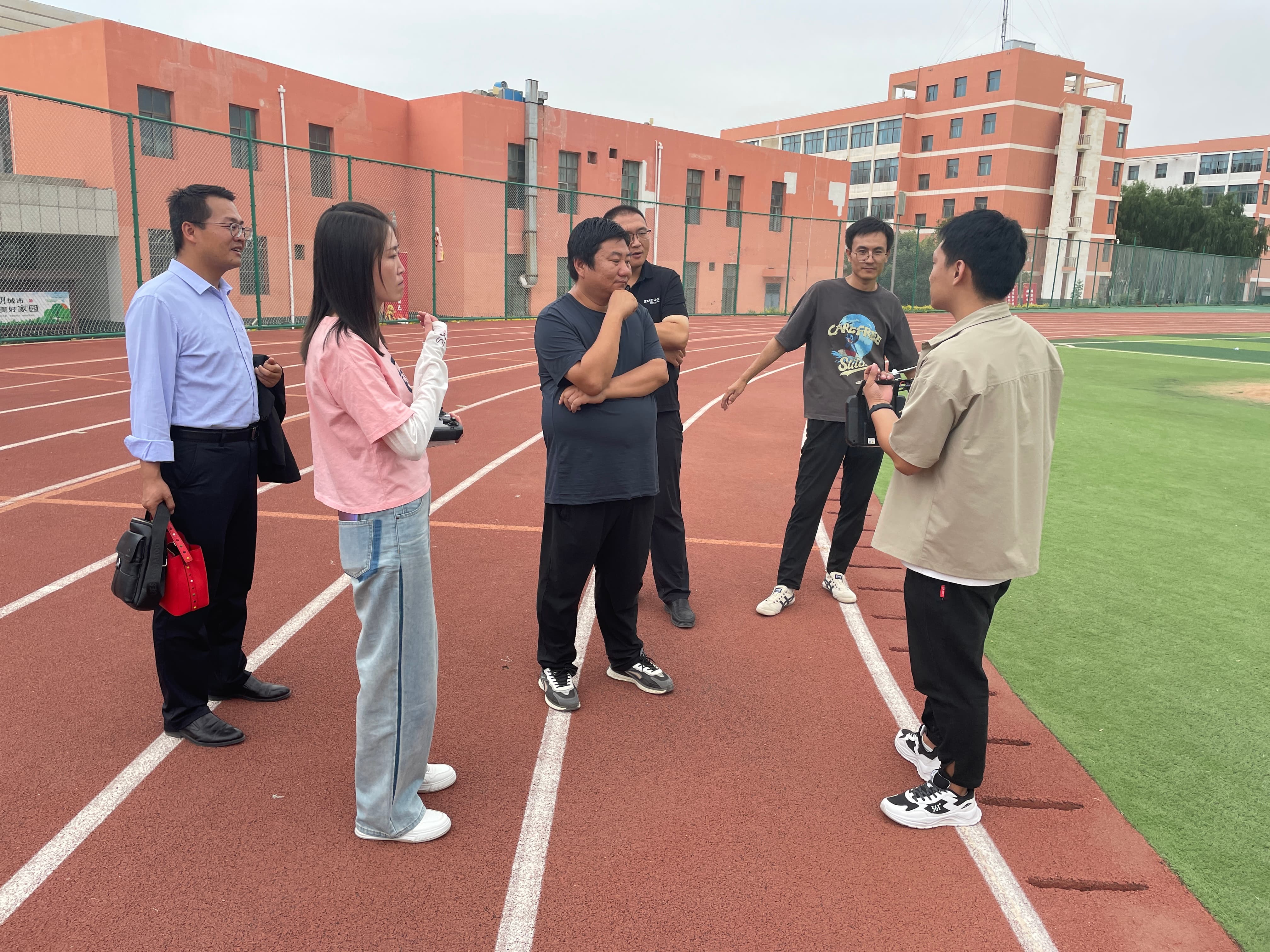 工程師在室外操場(chǎng)講解無人機(jī)的飛行原理及遙控器的使用方法