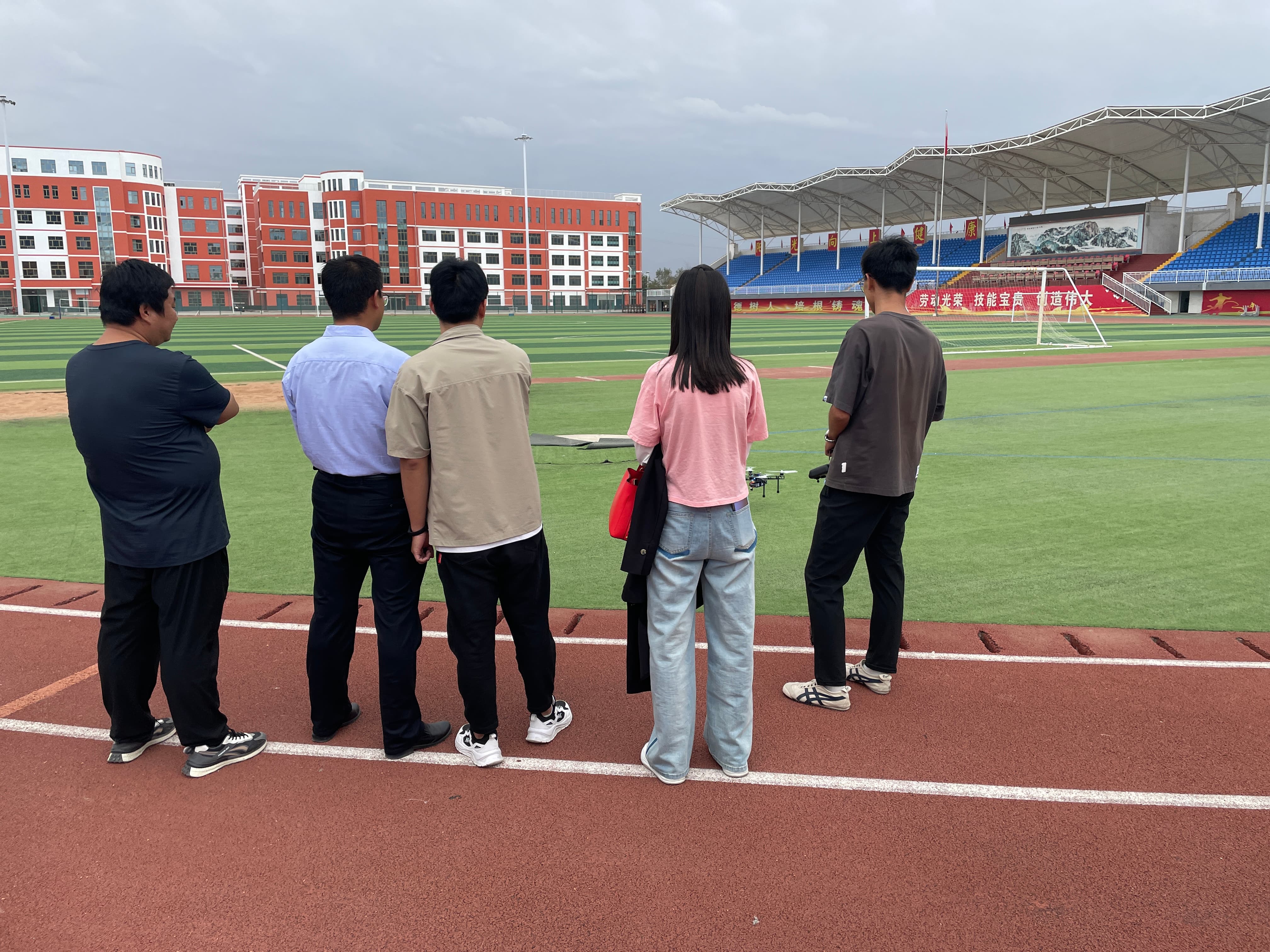 工程師在室外操場(chǎng)演示無人機(jī)飛行操作步驟