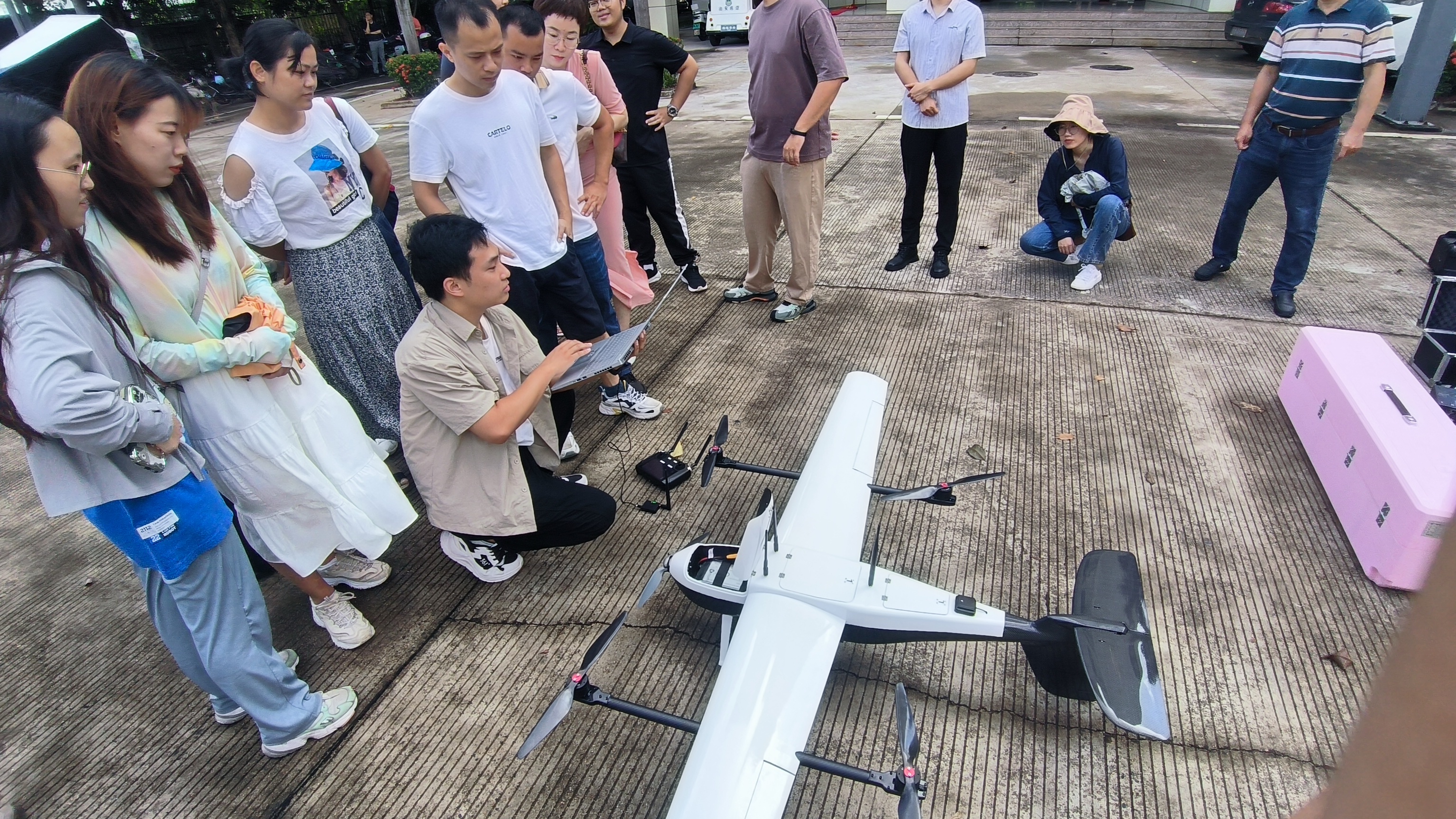 工程師在室外展示垂直起降無人機使用操作