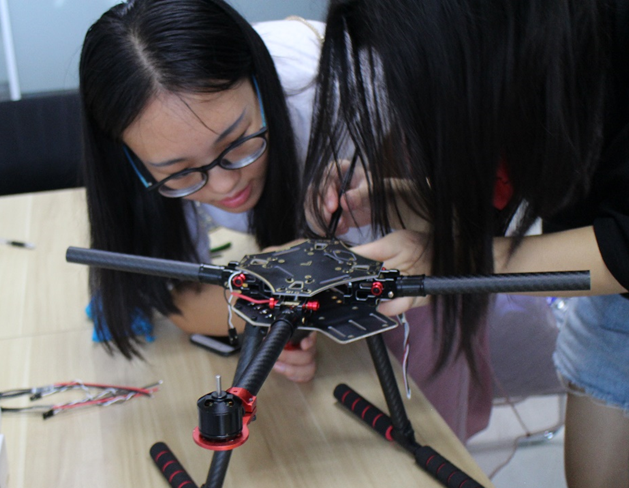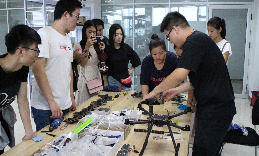 工程師帶領(lǐng)學(xué)生認(rèn)識(shí)無人機(jī)構(gòu)造