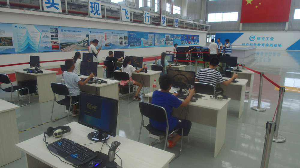 下午,孩子們在幾位教員的指導下體驗了飛機模擬器,三聯(lián)屏上是模擬飛機飛行中的視角,真正過了一把飛行員的癮。