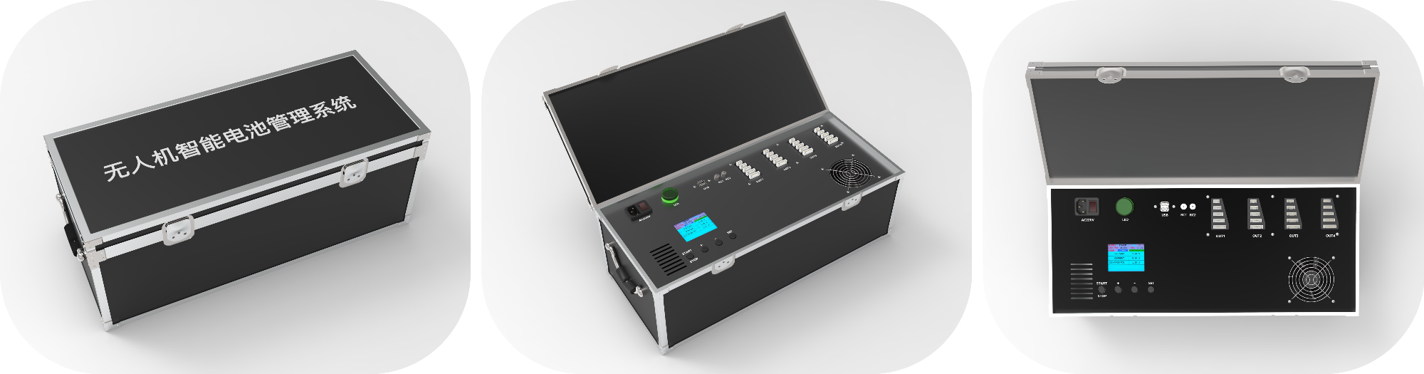 1、無(wú)人機(jī)智能電源系統(tǒng)采用集成式手提航空箱設(shè)計(jì)、面板包含4路充電組接口,每組包含1-6S充電接口,最多可同時(shí)充放 4路2-6S鋰聚合物電池;